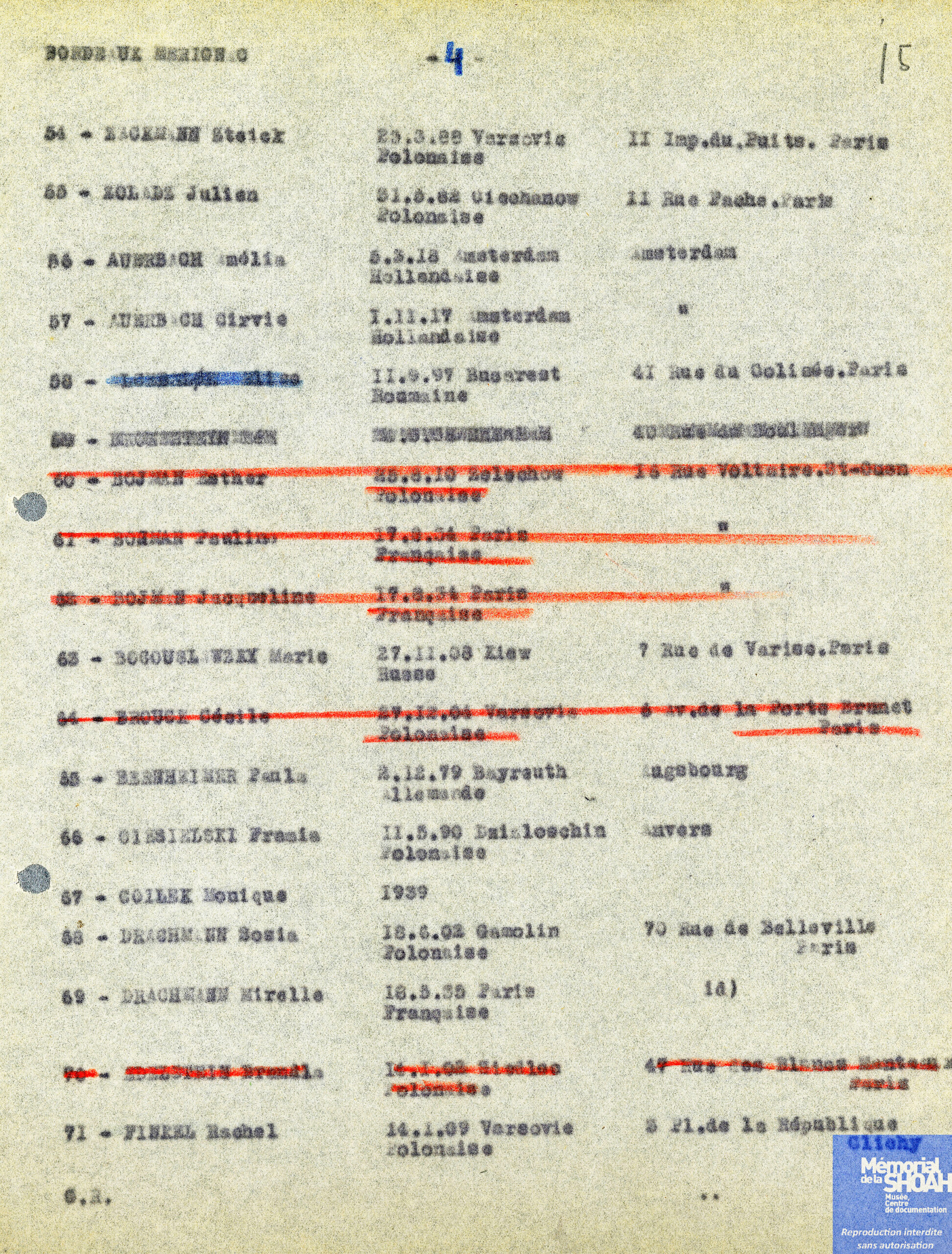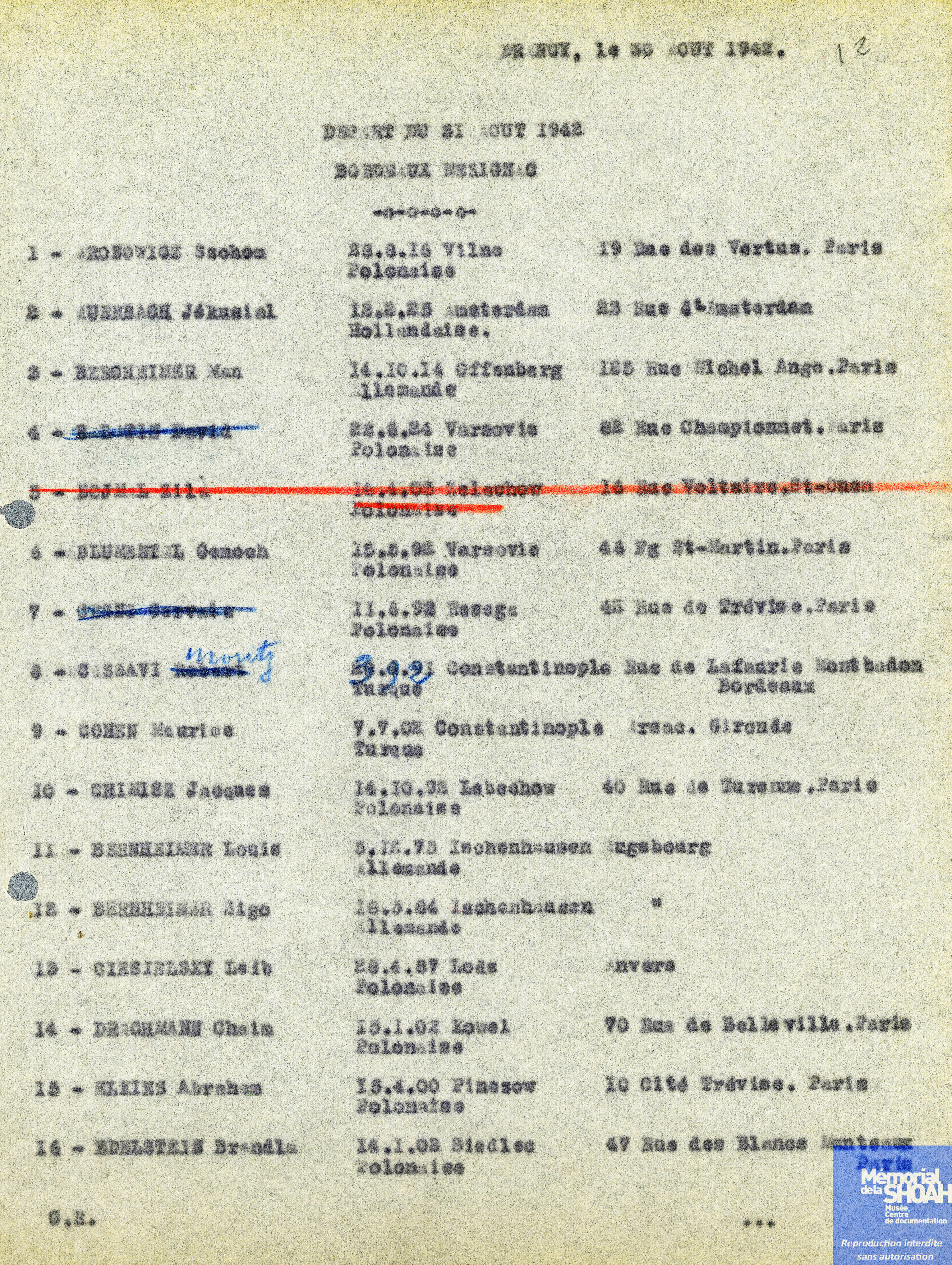 Ses trois compagnons d’infortune sont eux déportés à Auschwitz par le convoi n° 26 au départ de Drancy le 31 août 1942. Le convoi y arrive le 2 septembre.