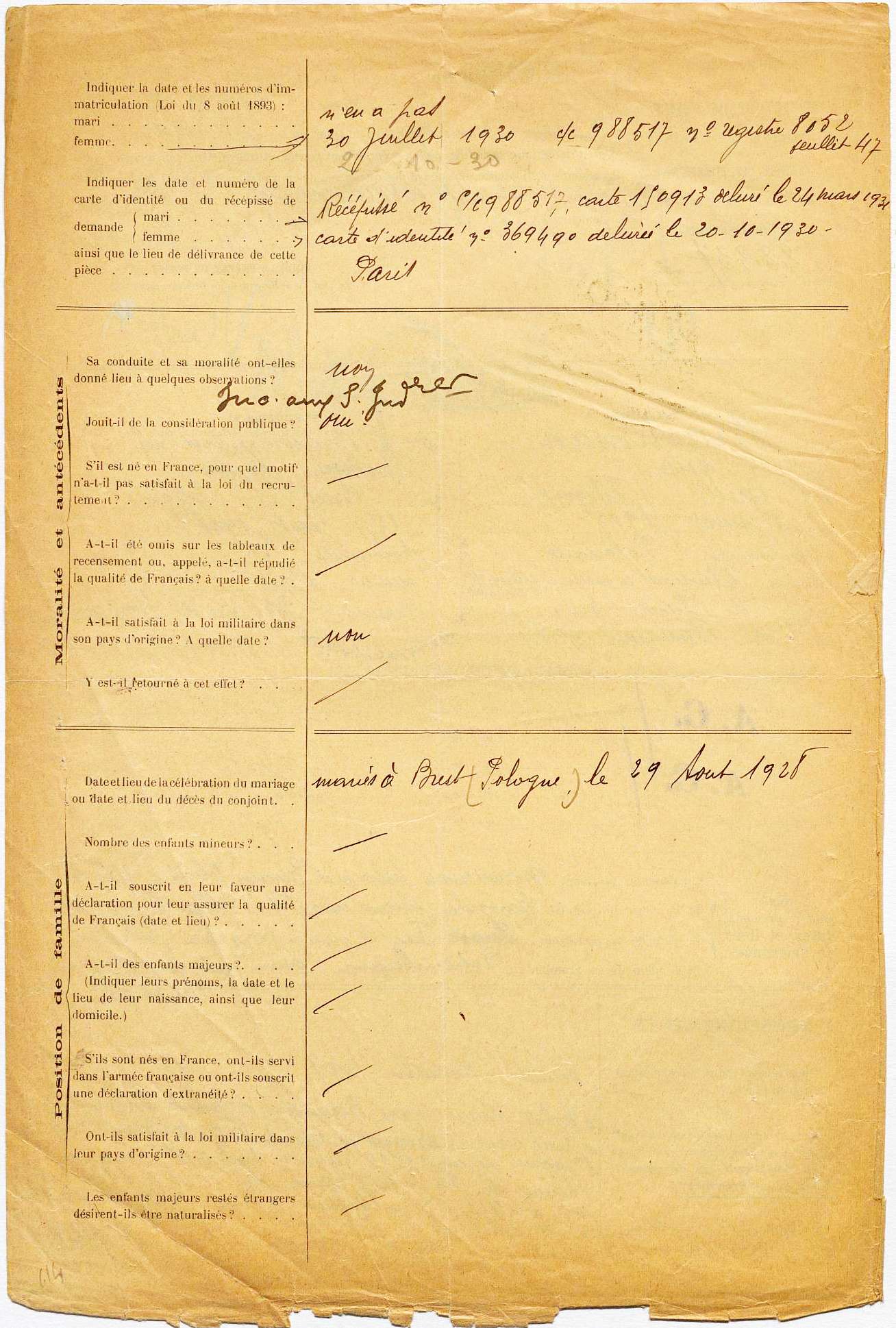 Dès 1931, il dépose une demande de naturalisation, rejetée, et renouvelle sa démarche, sans plus de succès, en 1932 et 1933.