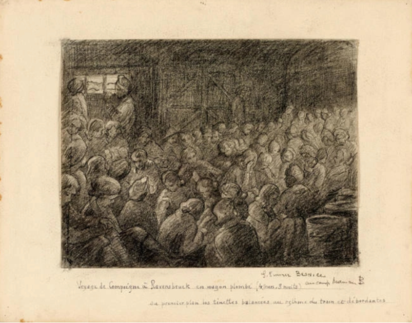 « Je me suis trouvée, à 5 heures du matin, le 29 janvier 1944 [sic], chantant la Marseillaise et le Chant du départ, dans une charrette de la Révolution, me rendant à la gare de Compiègne pour le grand départ… vers Ravensbrück. Nous étions 1.000, celles que notre matricule a fait appeler ‘les 27.000’».