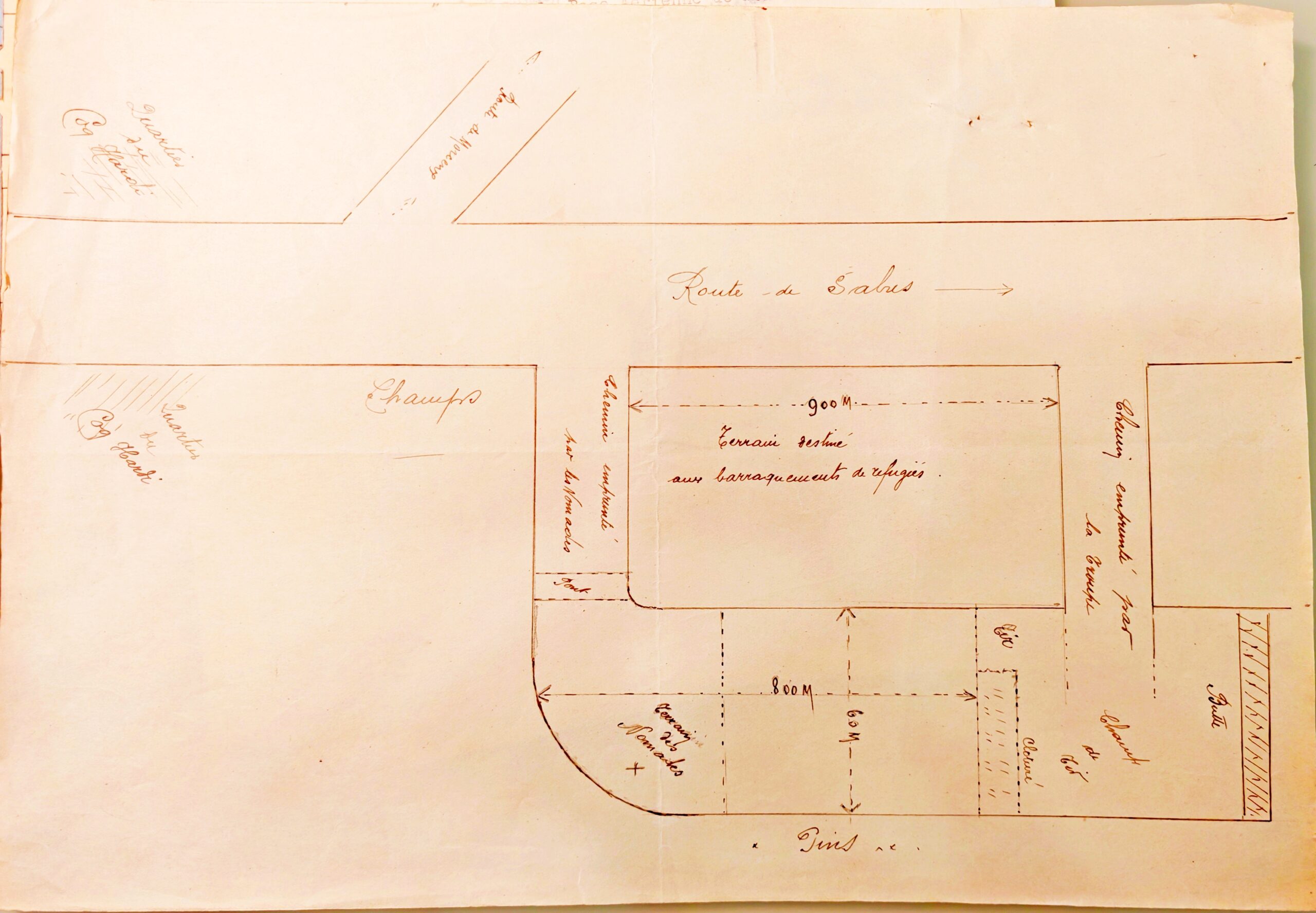 Finalement, les Nomades sont installés sur un terrain appartenant à M. Vives (du château de la Hiroire) situé route du Houga, aujourd’hui Quartier Chourié, près de l’impasse de Pinte Sec.