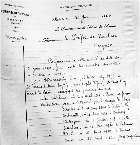 En juin 1940, la famille Wanderstein a été assignée à résidence à Apt (Vaucluse), et l’on trouve des Weiss (Vaise) et Winterstein (Wanderstein) sur les registres des camps de Mérignac et de Poitiers, certains sont déportés en Allemagne.