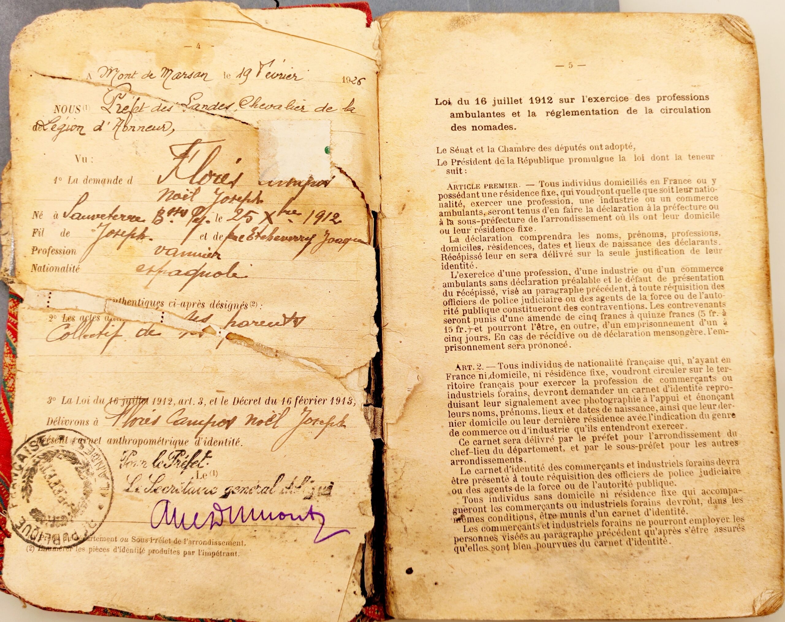 En France, la loi du 16 juillet 1912 sur l’exercice des professions ambulantes instaure pour 60 ans une réglementation de la circulation des Nomades, à qui les autorités imposent de détenir un carnet anthropométrique à faire viser par la gendarmerie durant leurs déplacements.